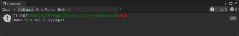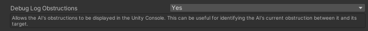 The Debug Log Current Obstruction allows a target's current obstruction to be displayed in the Unity Console Window. This can be useful to help identify detection issues or ensure everything is working correctly. This is done every frame to ensure the most accurate obstruction information is displayed.
