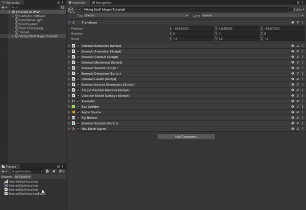 If you haven't already done so, you will need to add the Optimization Component to your AI. You can do this by searching for the Emerald Optimization script and dragging it onto your AI.
