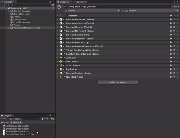 **Note:** After the AI has a Sound Detector Component and Reaction Objects assigned for each Threat Level, it has sound detector capabilities. Users can fine tune the [Sound Detector Settings](https://black-horizon-studios.gitbook.io/emerald-ai-wiki/emerald-components-optional/sound-detector-component/understanding-the-sound-detector-settings) to suit their needs.