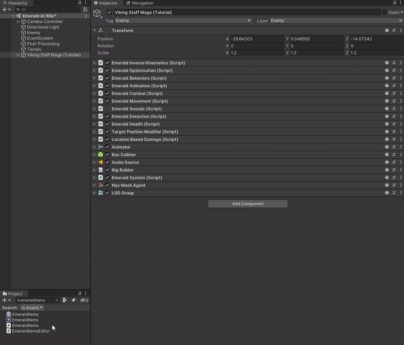 If you haven't already done so, you will need to add the Items Component to your AI. You can do this by searching for the EmeraldItems script and dragging it onto your AI.