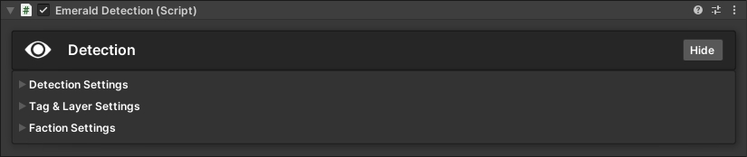 The Detection Component gives AI the ability to detect other targets and players. This is done by setting which layers an AI sees as targets. An AI can then determine how to react to detected targets by relying on its Faction Relation.