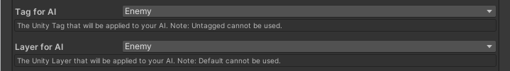 Choose a Tag and Layer for your AI. This is dependent on your project and should be kept the same for all AI objects. In this example, we will be using the Enemy layer and tag.