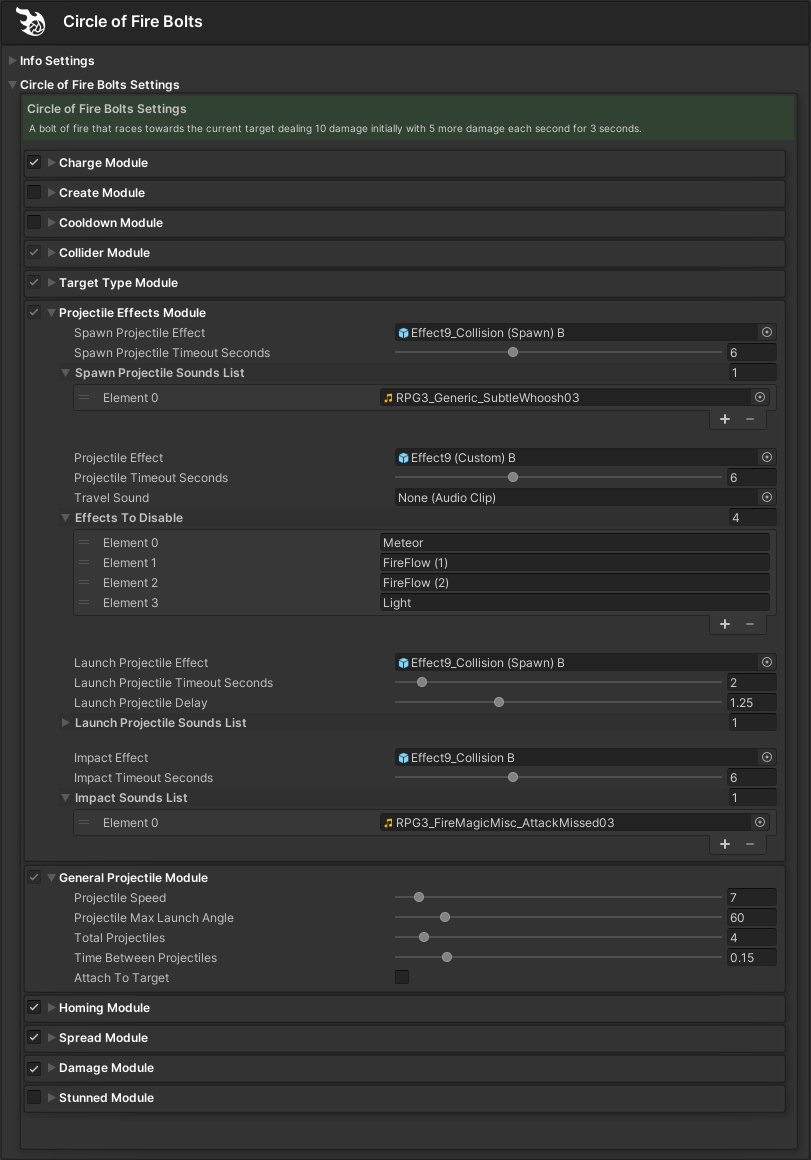 General Projectile Abilities are projectiles that have many uses and settings. These can range from straight shooting projectiles to a whole circle of homing projectiles.