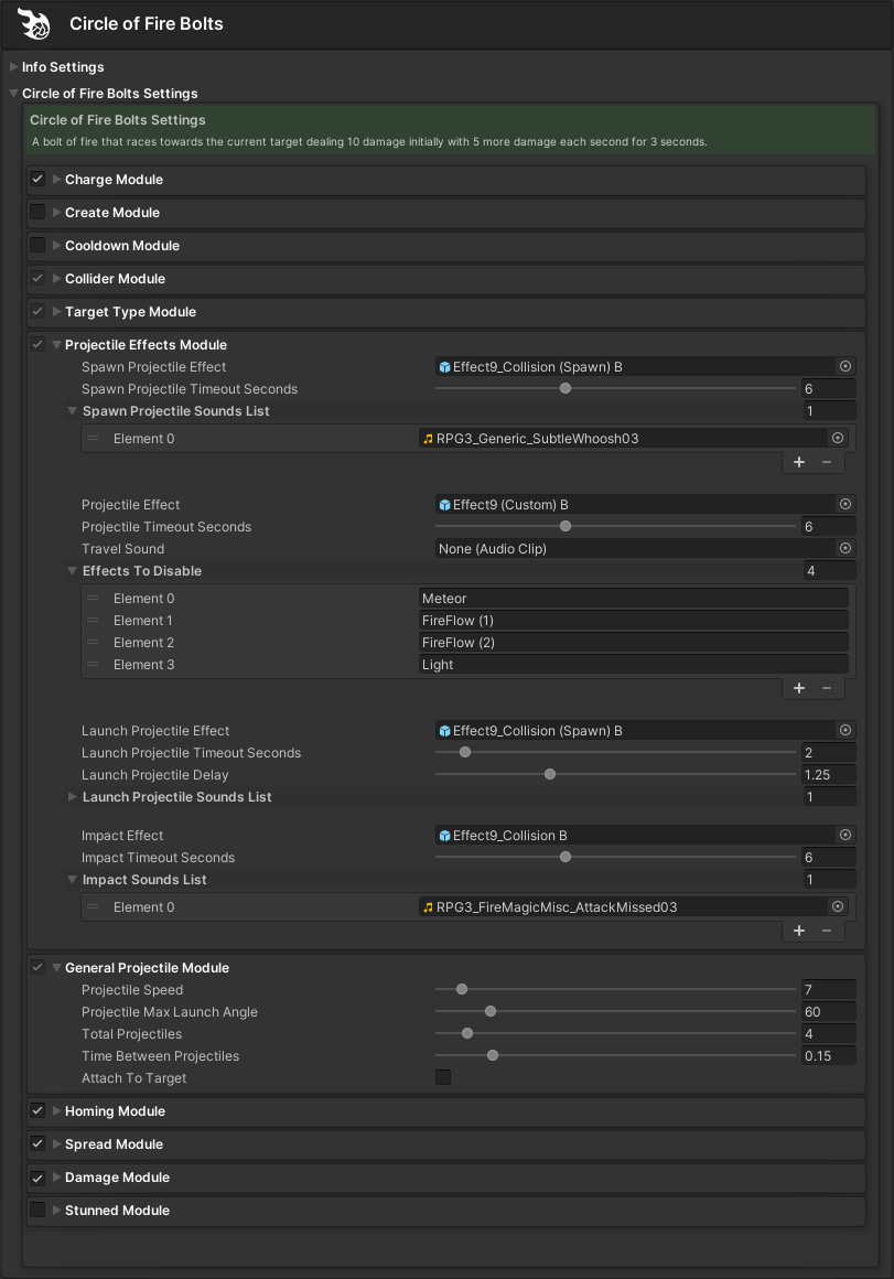<figure><img src="https://content.gitbook.com/content/v03IiZPaMe8fX49a9MnO/blobs/6c8Jb8QPmmFd8KHweoxs/GeneralProjectileEditor.png" alt=""><figcaption><p>The ability object used to create the above effect.</p></figcaption></figure>