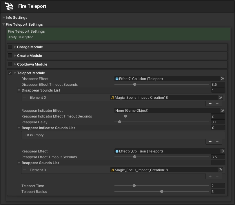 This is the Teleport Ability Object that was used to create the ability in the above example clip.