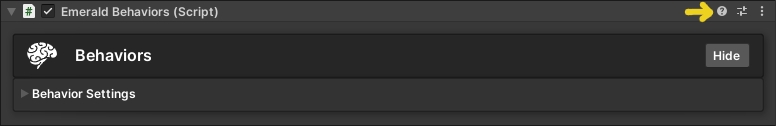 At any time, if you need quick access to the Emerald AI 2023 Wiki, you can pressing the ? icon in the upper right corner of an Emerald Component. This will take you to the Emerald AI Wiki for that specific component. You can also go to Window>Emerald AI>Emerald AI Wiki within Unity.