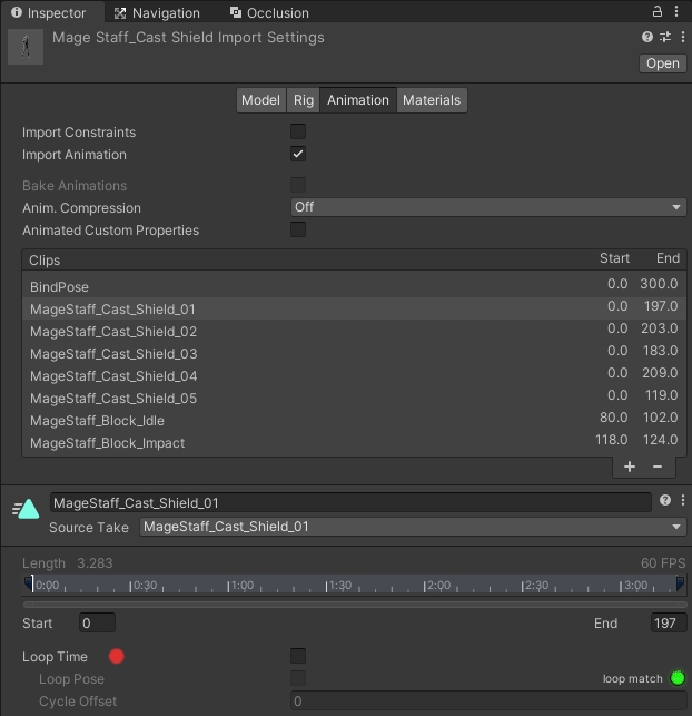 Find the Read/Write setting (located within the Model tab of your fbx object that the animation is a part of) and enable it. Ensure you press the Apply button to save the changes.