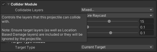 All projectile ability's allow users to control which layers the projectiles are allowed to collide with. Any layers that are not included within the ability's Collidable Layers will be ignored.